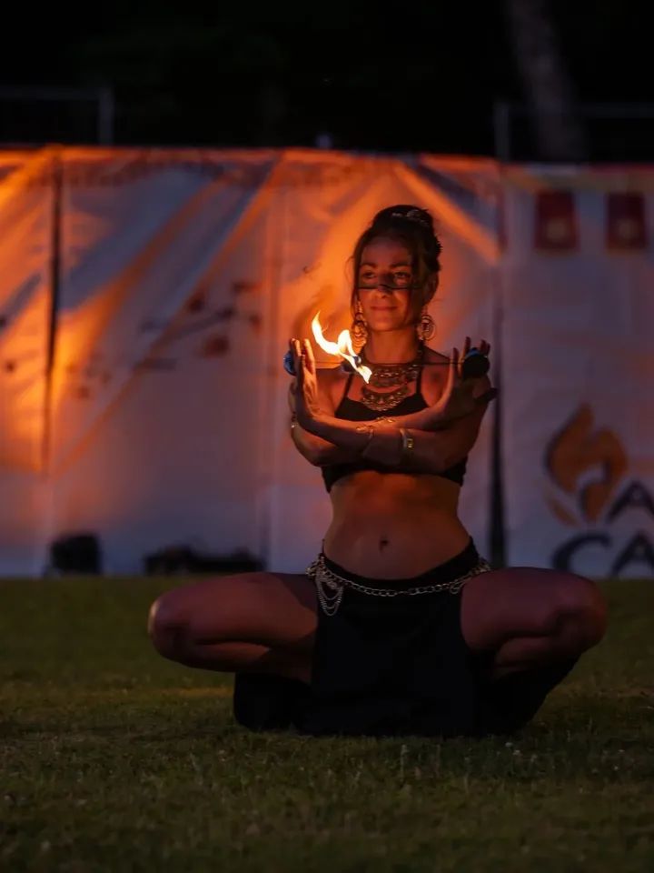 Během dílny dbám na zásady bezpečnosti, kladu důraz na respekt k elementu ohně a poskytuji jemné vedení pro objevování možností v pohybu a posouvání hranic.